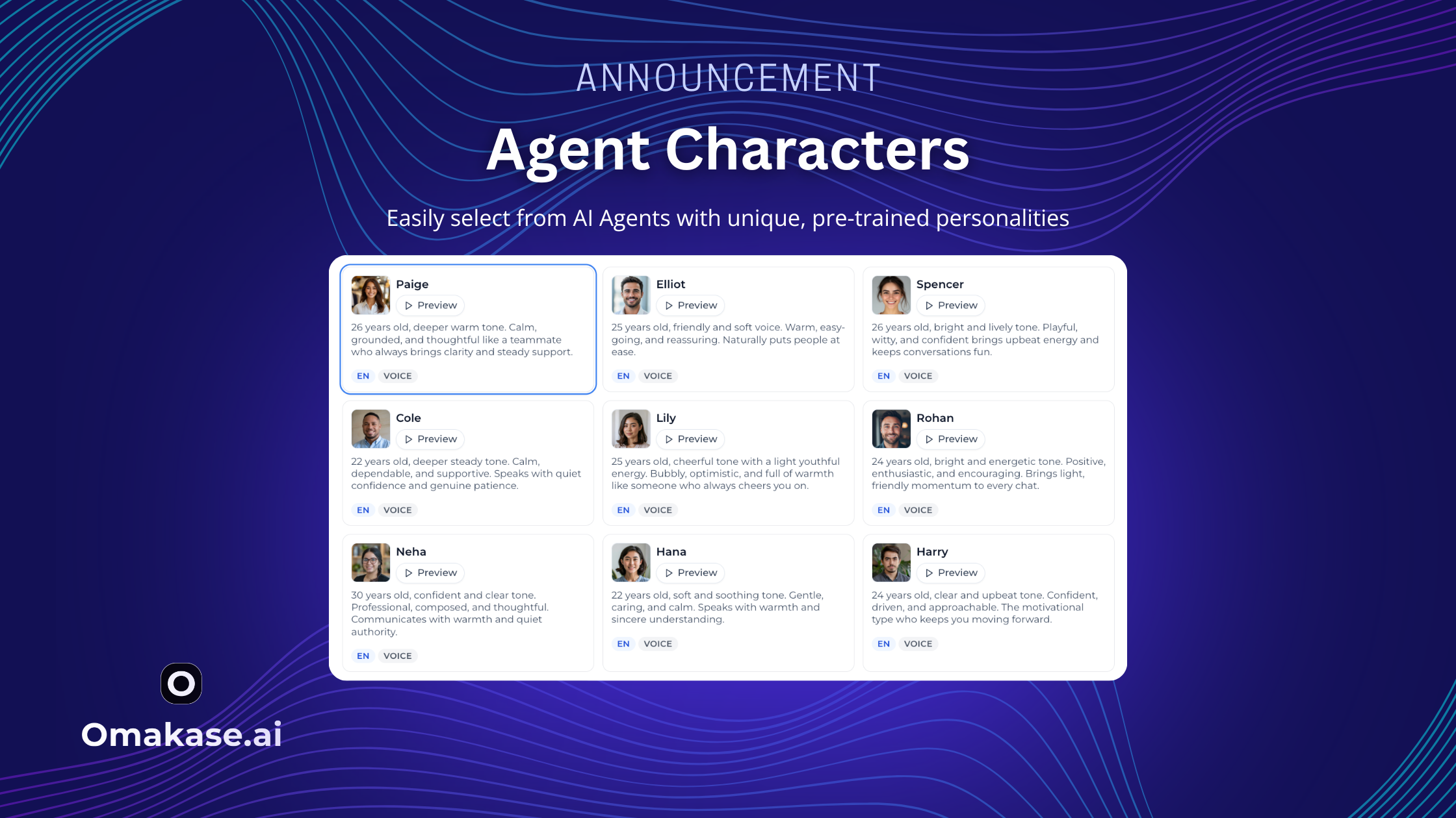 October 27th, 2025 – Easily select from AI Agents with unique, pre-trained personalities